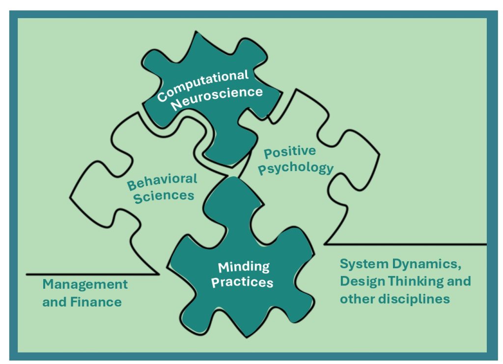 As a multi-faceted program, MBSAT draws on several scientific fields, especially on Computational Neuroscience. In addition, it draws on Positive Psychology, System Dynamics, Behavioral Economics, Management and Finance, as well as on elements from other areas. Most importantly, it integrates classical, secular mindfulness practices as a proven methodology to cultivate awareness.
